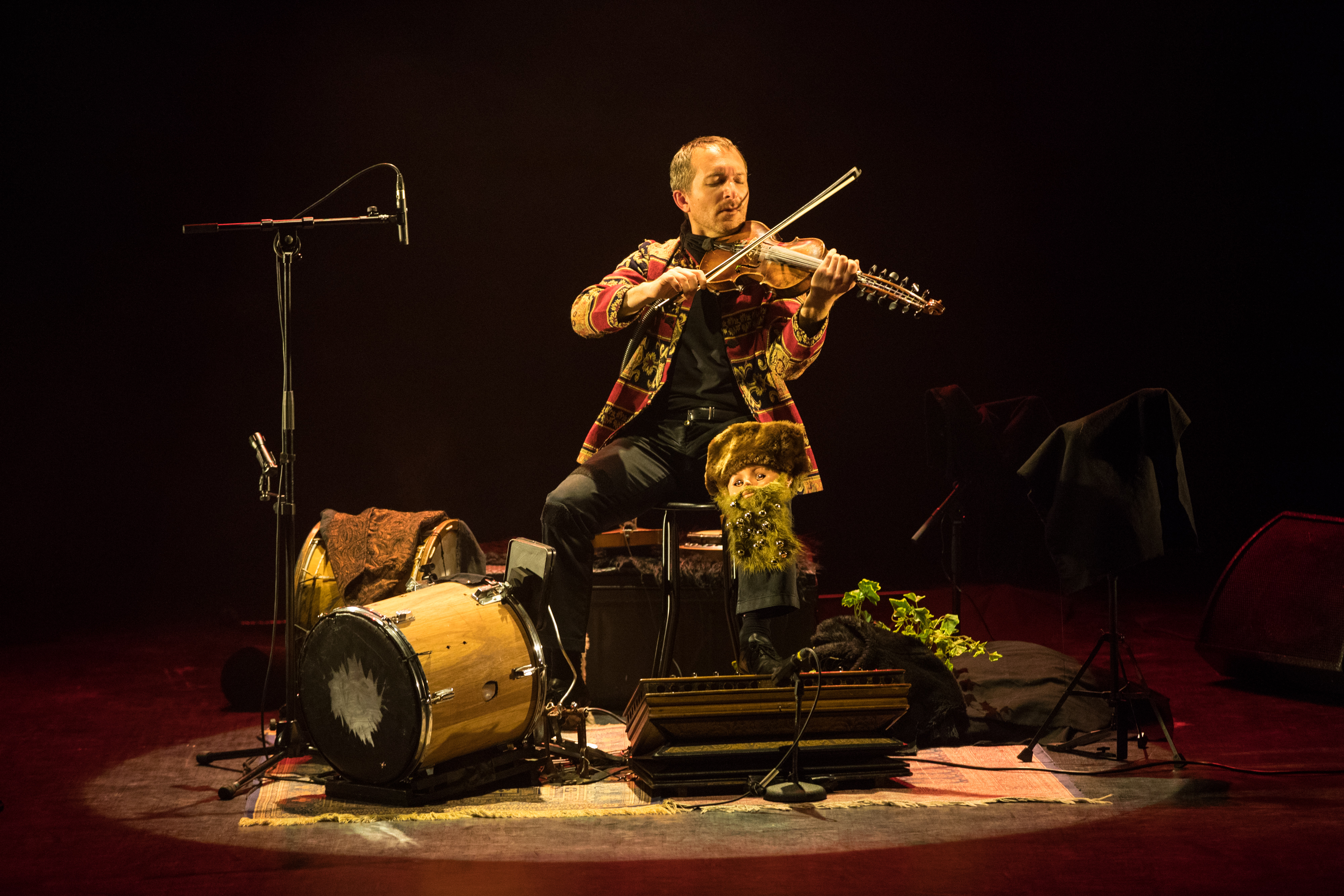 Frédéric Jouhannet violons, grosse caisse, pédalier d’accordéon basse, objets sonores