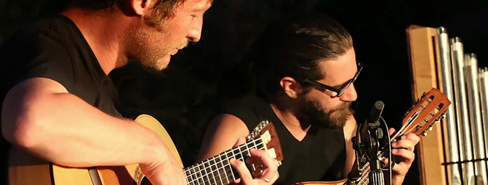 Héritier de l’école de la guitare classique, Fred joue de son instrument comme d’un petit orchestre ; face à lui, Frank, indispensable musicien-caméléon d’Olivia Ruiz, collectionneur et dompteur d’instruments de préférence rares et incongrus : scie musicale, nyckelharpa, organetto, piano-jouet…