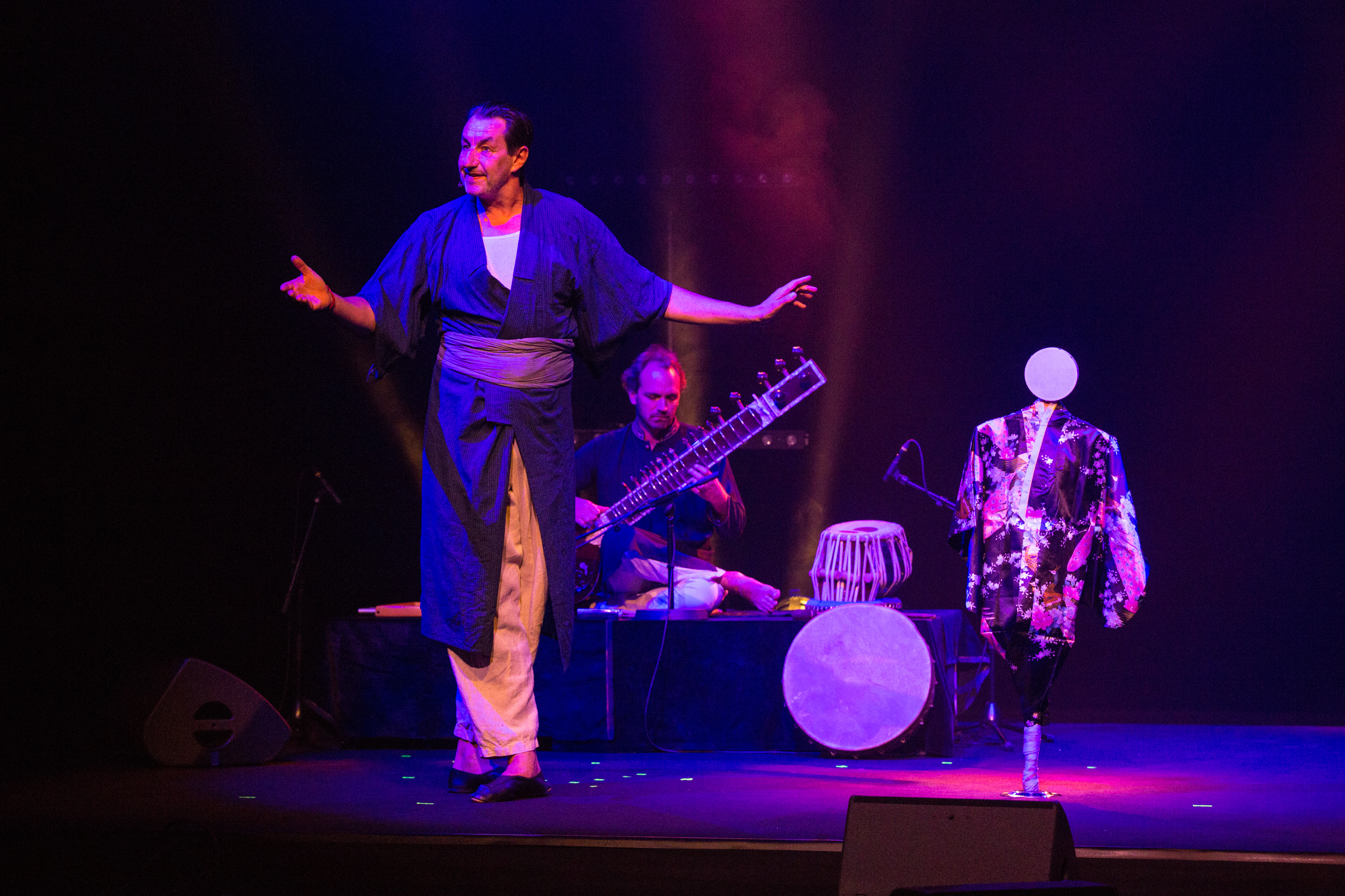 Conçu et raconté avec théâtralité par Yanowski – de retour aux JM France après le triomphe du spectacle Zorbalov et l’orgue magique –, il est délicatement accompagné par Thomas Jacquot aux sitar, surbhar et tablas. Les sons enveloppants et méditatifs des instruments traditionnels indiens résonnent avec grâce et fait écho aux mots de Yanowski, dont la voix plurielle et le timbre chaud insufflent puissance et douceur au récit du jeune Vasidéva.